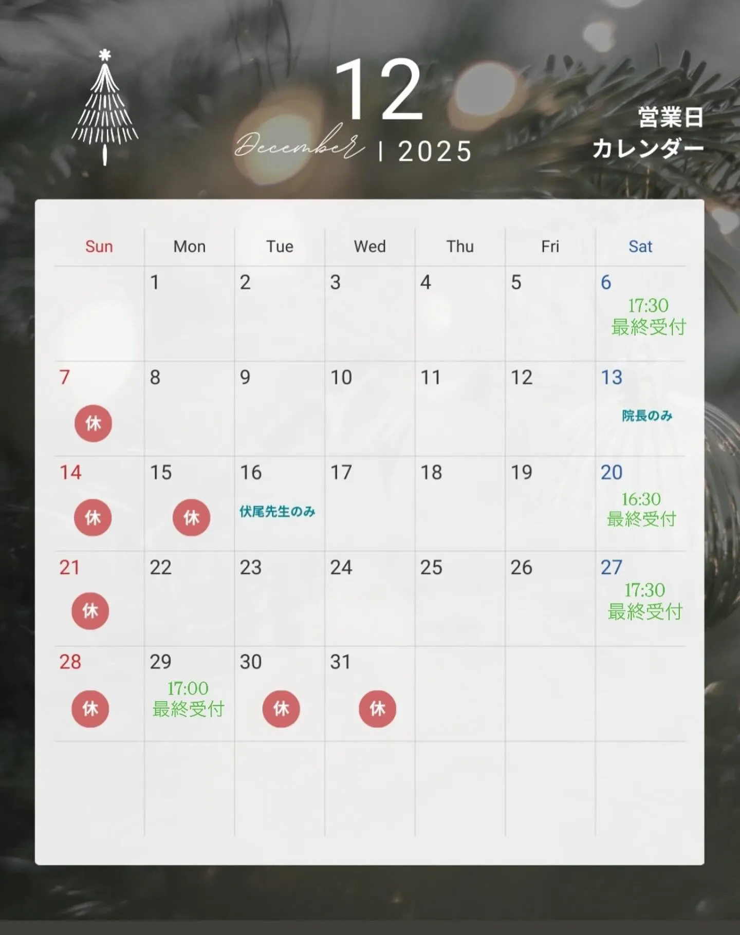 12月休診日のお知らせ📢